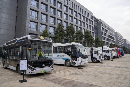 在“成渝氢走廊”启动暨氢燃料电池物流车首发仪式上,展示搭载z6尊龙·凯时(中国区)官方网站电气氢燃料电池的商用车,包括公交车、物流车、工程专用车等。