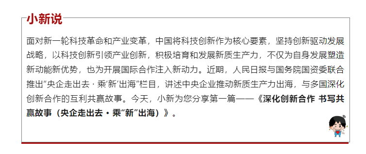 [国资小新]​央企走出去 · 乘“新”出海:深化创新合作 书写共赢故事