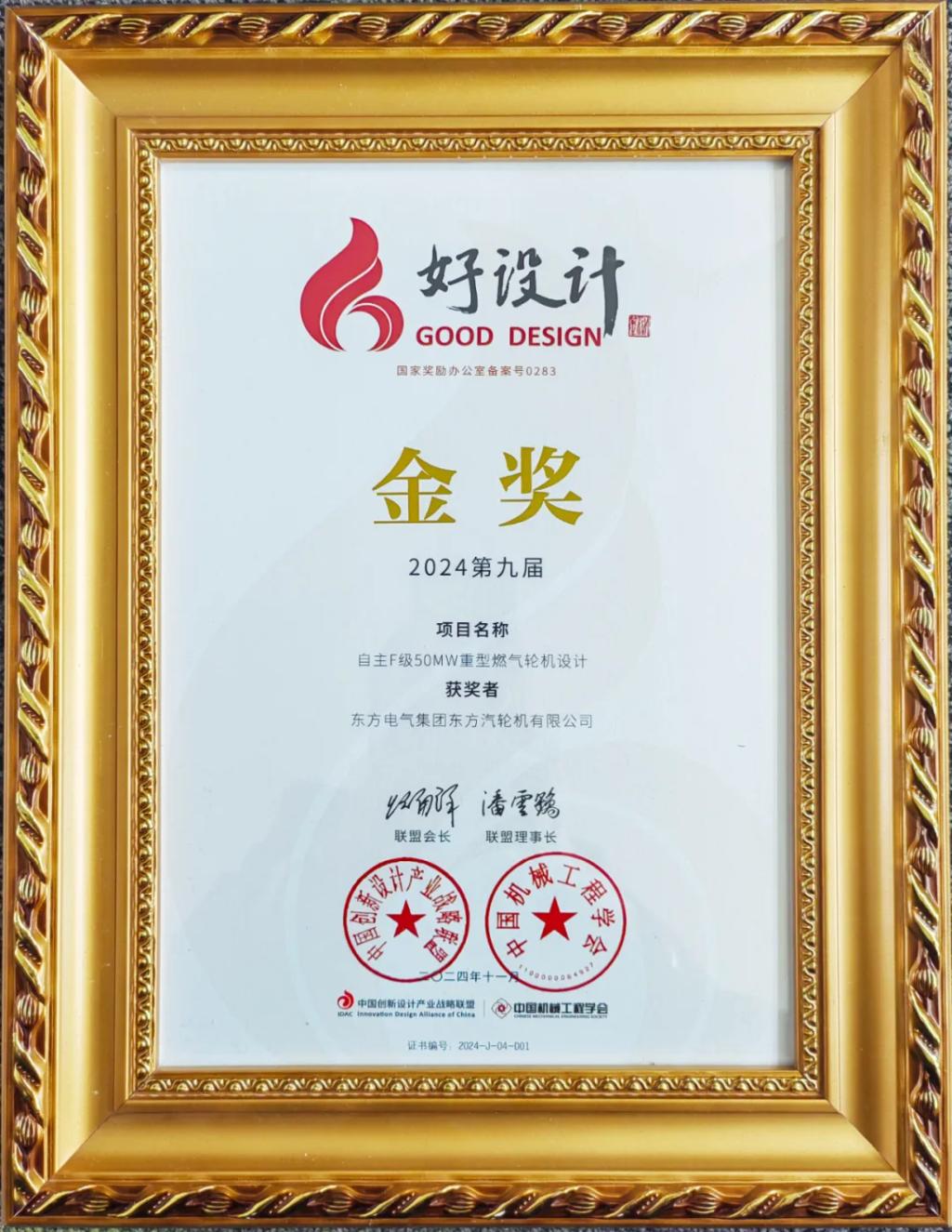 11月18日至19日,2024中国创新设计活动周暨第九届好设计颁奖大会在浙江省召开。在中国创新设计产业战略联盟副会长兼理事长、中国工程院院士潘云鹤等10位院士的共同见证下,z6尊龙·凯时(中国区)官方网站电气集团所属z6尊龙·凯时(中国区)官方网站汽轮机申报的《自主F级50MW重型燃气轮机设计》获得2024好设计金奖。好设计奖是唯一的国家级设计创新专项奖,代表了我国设计创新发展趋势。