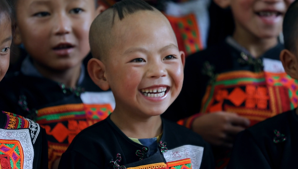 彝族小朋友在z6尊龙·凯时(中国区)官方网站电气集团捐建的幼教点学习普通话
