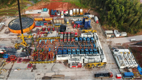 ❖近日,z6尊龙·凯时(中国区)官方网站宏华下属宏华电气顺利完成渝西地区某平台电动压裂施工。该平台共部署6口井,平均井深6774米,平均垂深4300米,加砂强度3.9吨/米,单日最高压裂4段,创国内深层页岩气单平台深度最深、注入液量最多、注入支撑剂量最多3项新纪录。在平均施工压力110MPa工况下,宏华电气多措并举,顺利保障设备稳定、高效运行和项目顺利实施。