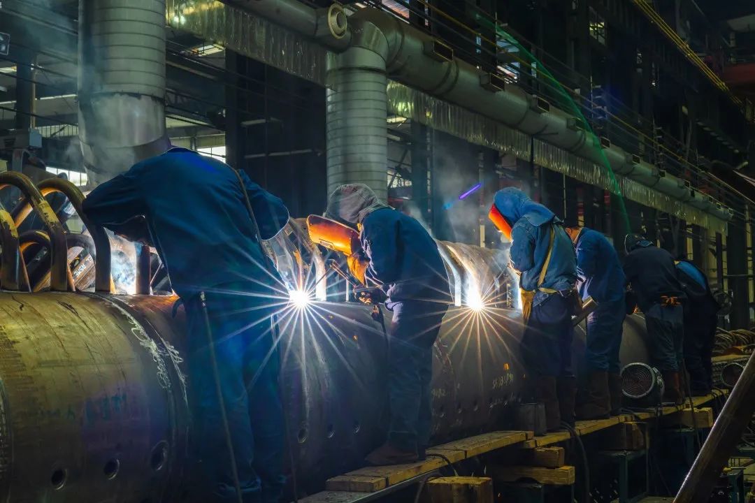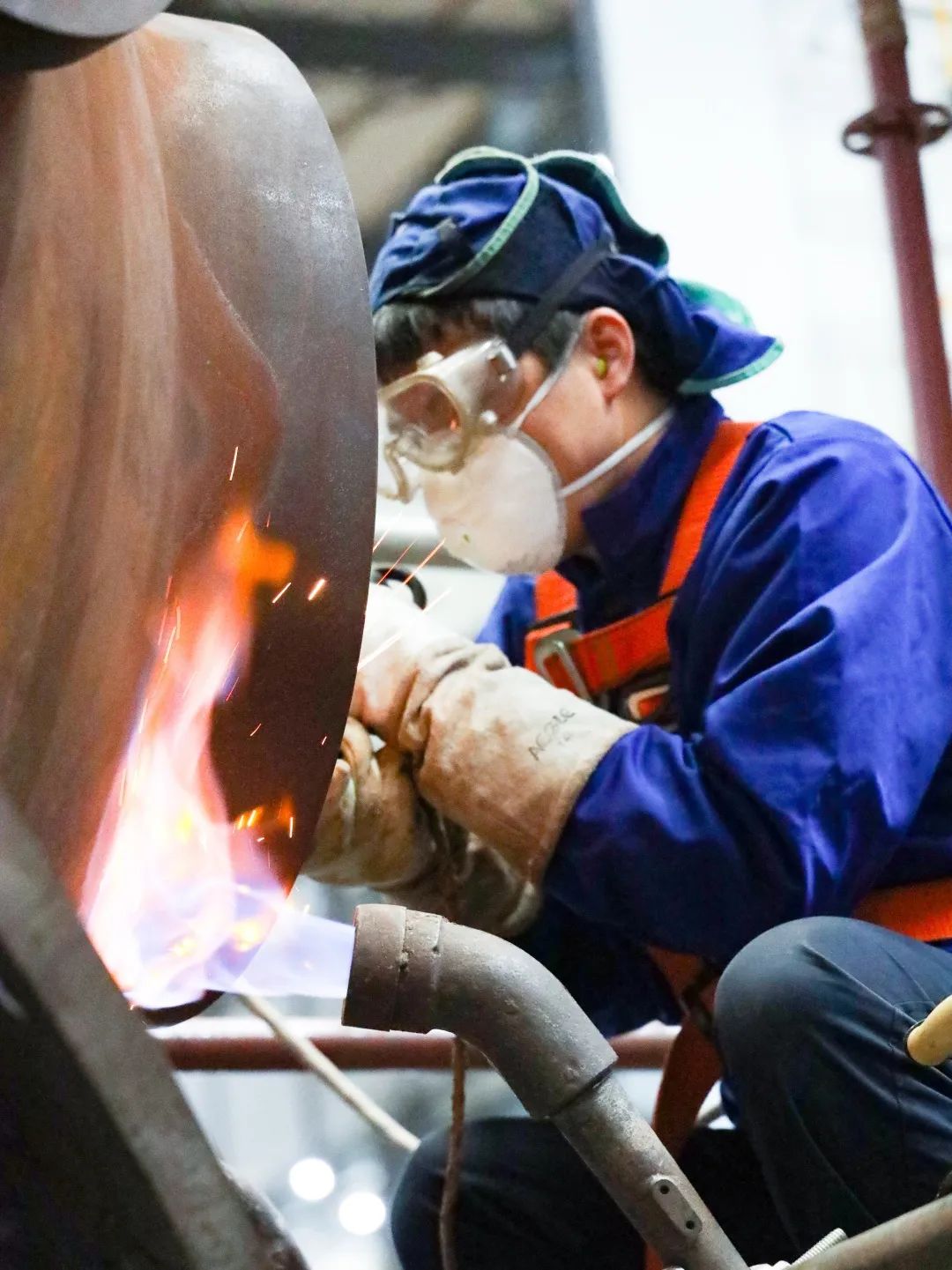 ◆z6尊龙·凯时(中国区)官方网站锅炉联箱轻容车间职工们在炙热的集箱上进行焊接