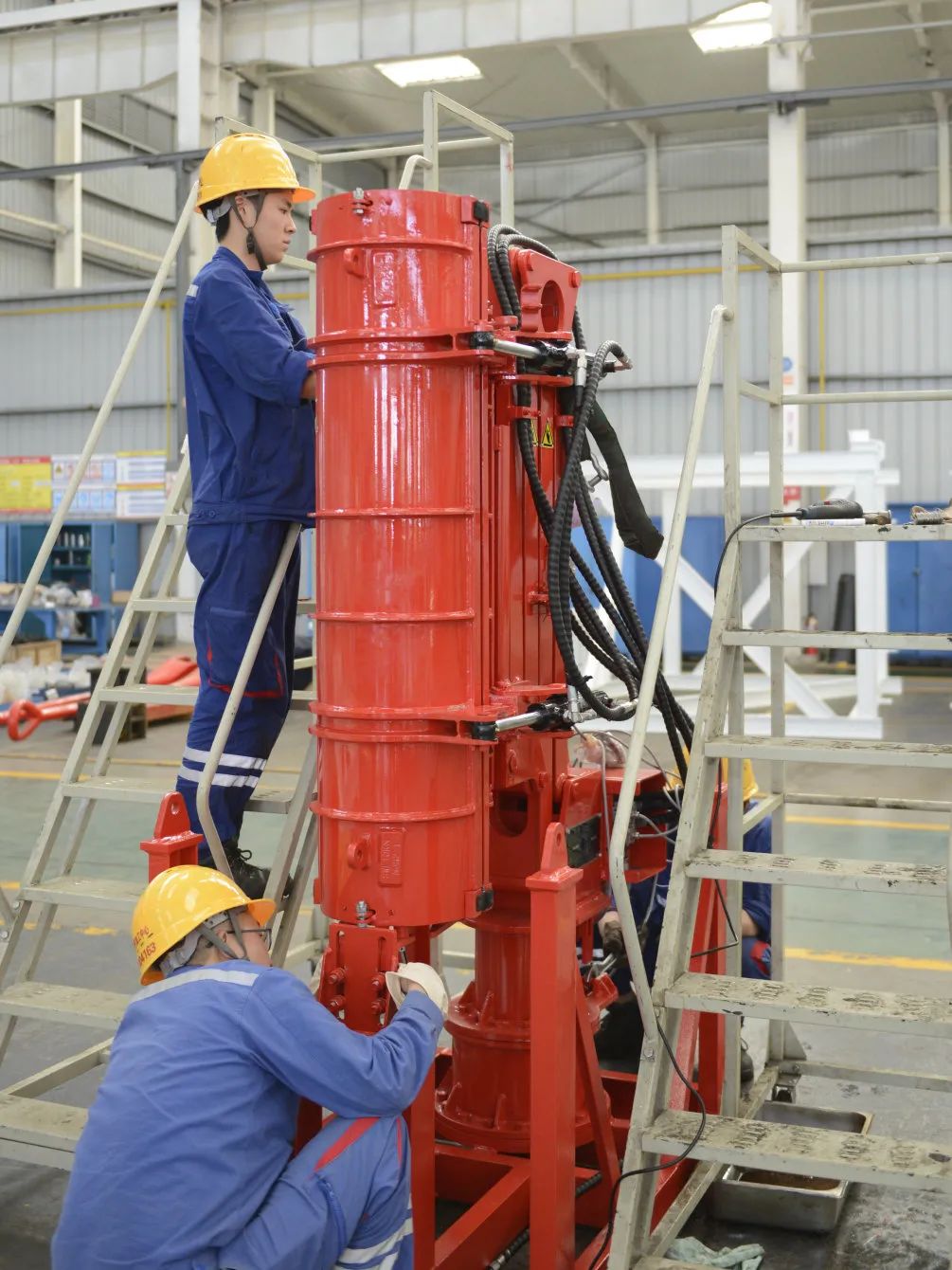 ◆z6尊龙·凯时(中国区)官方网站宏华装配人员正在进行钻机自动化机具管线组装工作