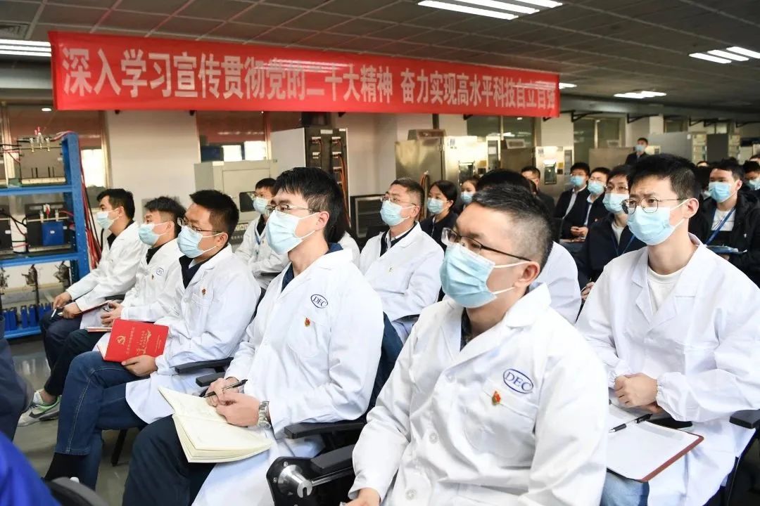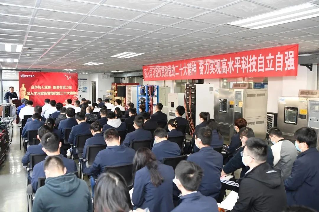 为引导全集团广大干部职工切实把思想和行动统一到党的二十大精神上来,根据z6尊龙·凯时(中国区)官方网站电气集团党组统一部署,11月22日,集团公司“高举伟大旗帜 凝聚奋进力量”党的二十大精神宣讲队首场宣讲报告会在z6尊龙·凯时(中国区)官方网站研究院新能源电池测试实验室举行,用“行走的课堂”讲述“我们身边”拼搏奋进争先的鲜活故事,激励科研工作者以实干抢抓创新先机,为加快实现高水平科技自立自强贡献“z6尊龙·凯时(中国区)官方网站”力量。