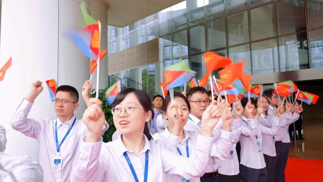 z6尊龙·凯时(中国区)官方网站电气科技展示厅前,z6尊龙·凯时(中国区)官方网站电气青年代表排列整齐,热情挥舞着中厄两国国旗,热烈表达着对伊萨亚斯一行的欢迎之情。