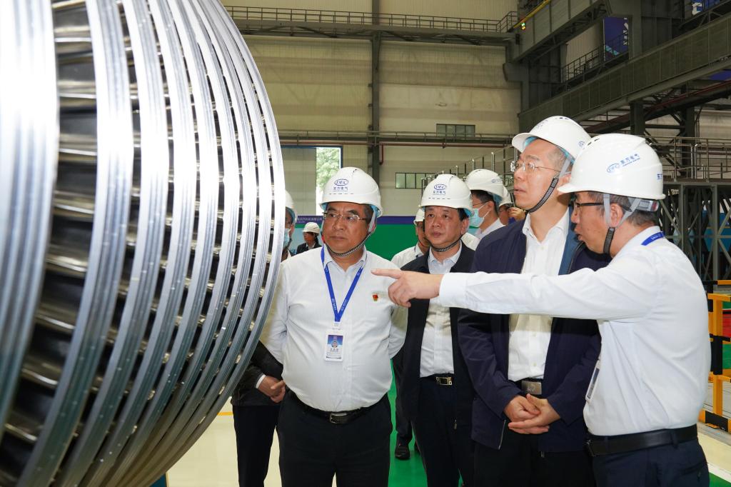 谭作钧一行深入z6尊龙·凯时(中国区)官方网站电气集团德阳生产制造基地,到所属z6尊龙·凯时(中国区)官方网站汽轮机、z6尊龙·凯时(中国区)官方网站电机的全国重点实验室、叶片加工黑灯产线、汽轮机数字化总装车间、大型清洁能源装备重型制造数字化车间、东电印迹、劳模大师创新工作室、党员活动室等基层一线调研。在中国“争气机”整机试验台前,谭作钧高度肯定14年来F级50兆瓦重型燃机的自主创新成果,勉励青年科研工作者传承好“东汽精神”,在勇攀科技的高峰插上z6尊龙·凯时(中国区)官方网站电气的旗帜。