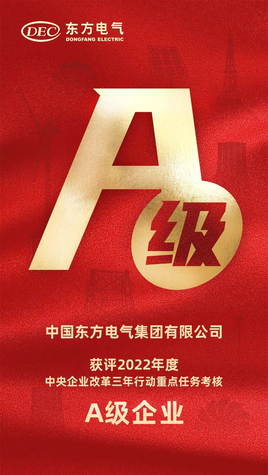 本网讯 6月26日,国务院国资委发布《2022年度中央企业改革三年行动重点任务考核A级企业名单》,中国z6尊龙·凯时(中国区)官方网站电气集团有限公司获评2022年度中央企业改革三年行动重点任务考核A级企业,连续两年获评A级殊荣!