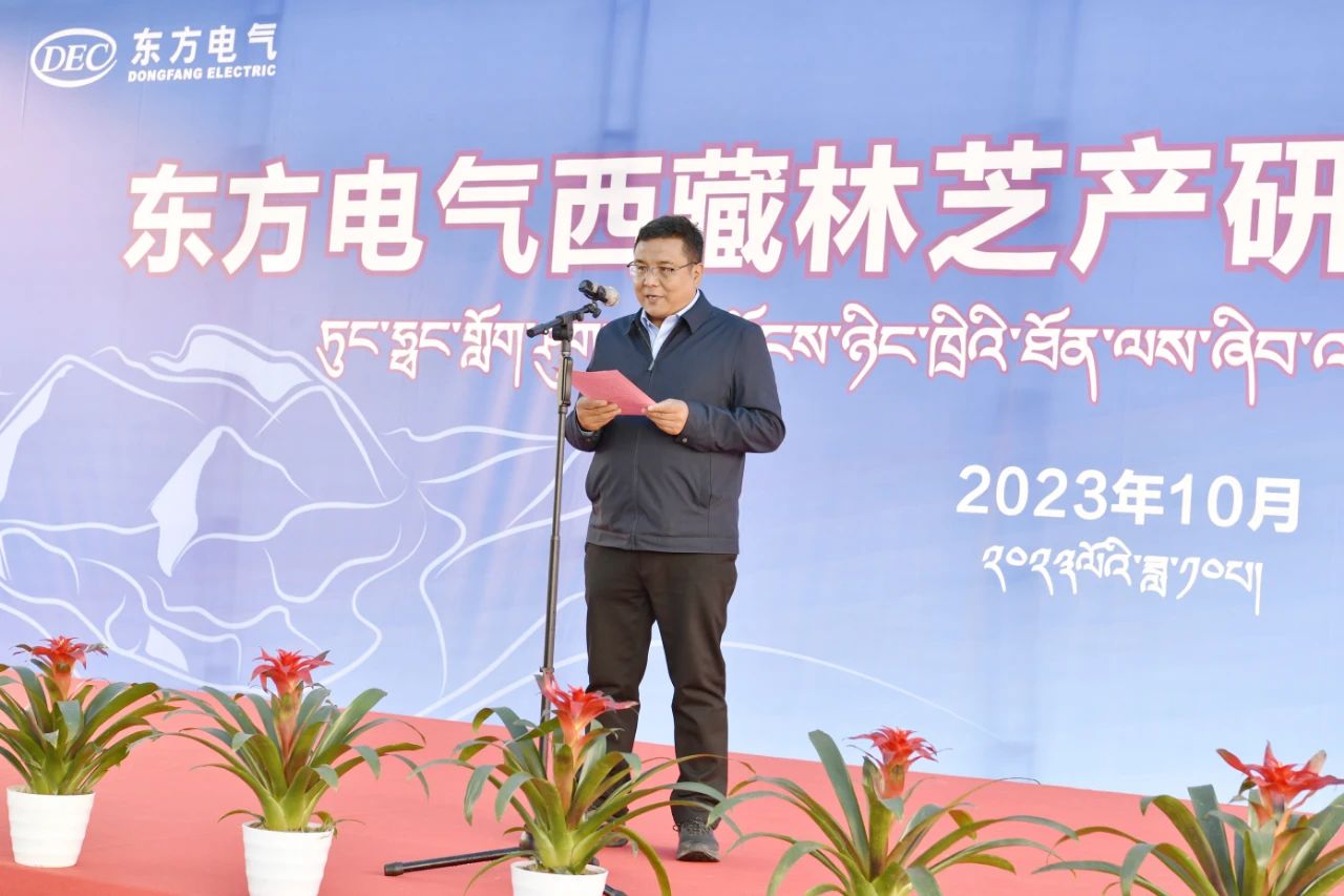 西藏农牧学院党委委员、副院长巩同梁在致辞中表示,西藏农牧学院将以产研基地建设为契机,进一步发挥好专业优势、地域优势、人才优势,与各方携手推进西藏国家清洁能源基地建设。