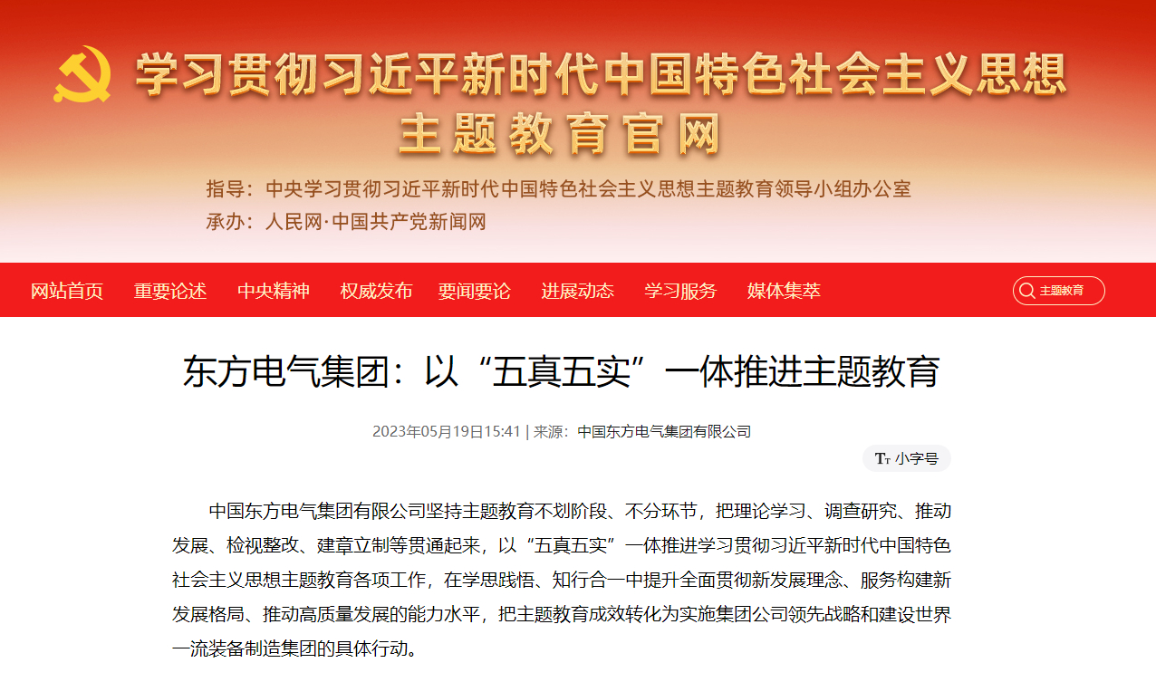 【媒体关注】主题教育官网:z6尊龙·凯时(中国区)官方网站电气集团以“五真五实”一体推进主题教育
