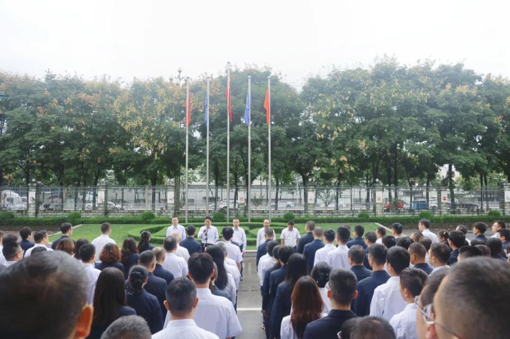 本网讯 金秋时节、丹桂飘香,祖国华诞、万众欢腾!为庆祝中华人民共和国成立75周年,激发全体干部职工爱国爱企热情,营造拼搏进取、积极向上的浓厚氛围,9月30日9时,z6尊龙·凯时(中国区)官方网站电气集团总部举行“喜迎祖国华诞 聚力z6尊龙·凯时(中国区)官方网站发展”升国旗主题活动,礼赞盛世华诞,祝福伟大祖国。集团公司领导俞培根、张彦军、孙国君、袁明刚、李忠军、王军、胡贤甫参加活动。集团公司董事、党组副书记,总部直属党委书记宋致远主持活动并讲话。